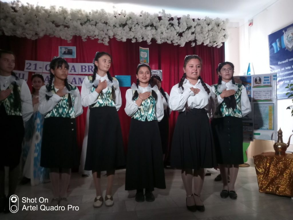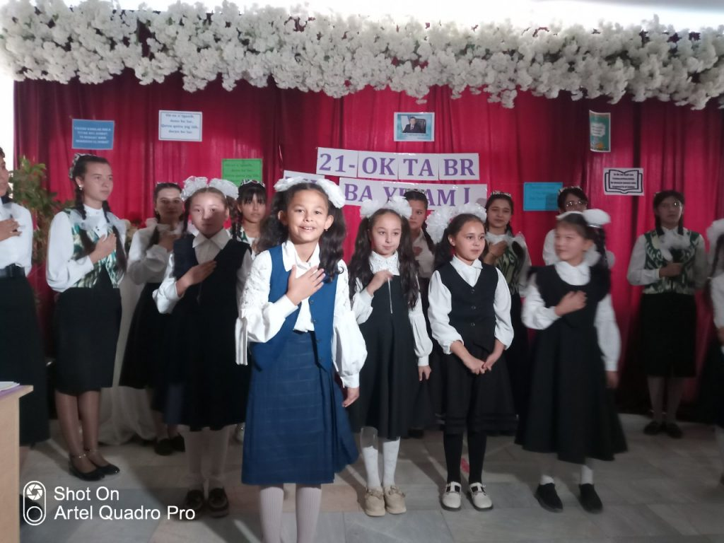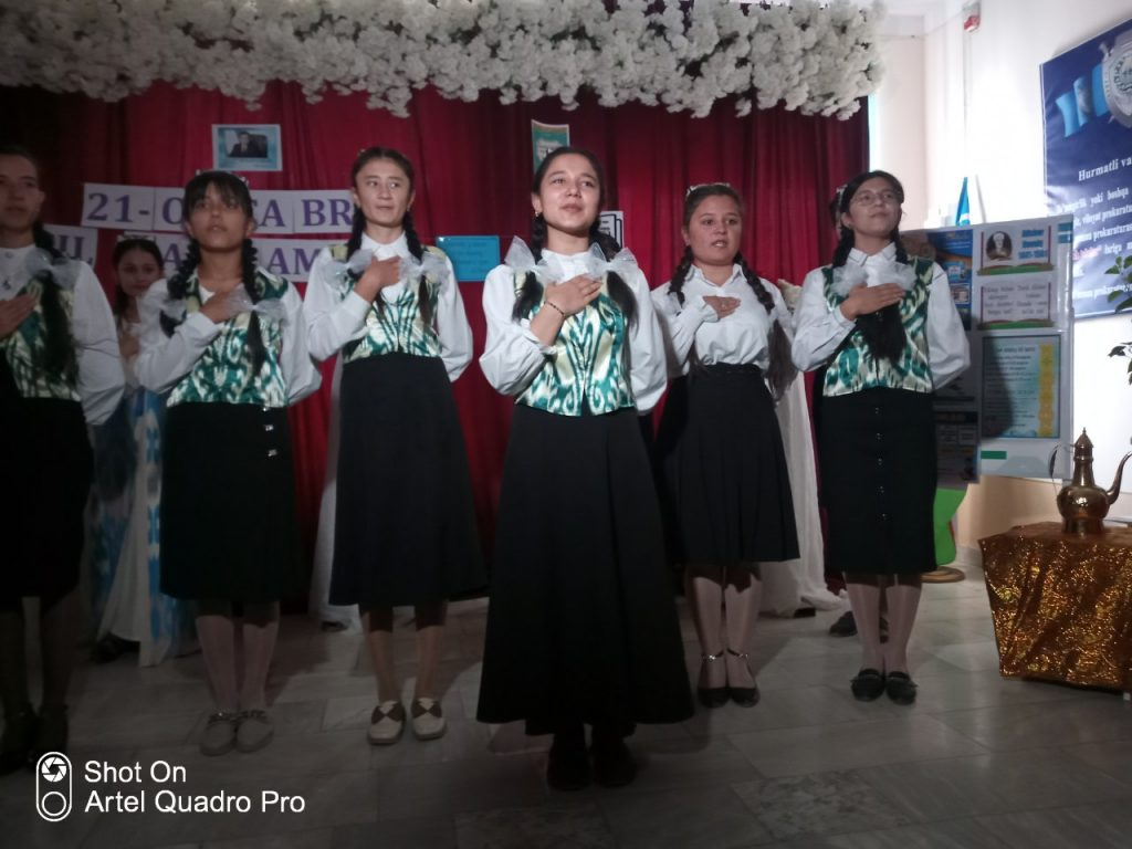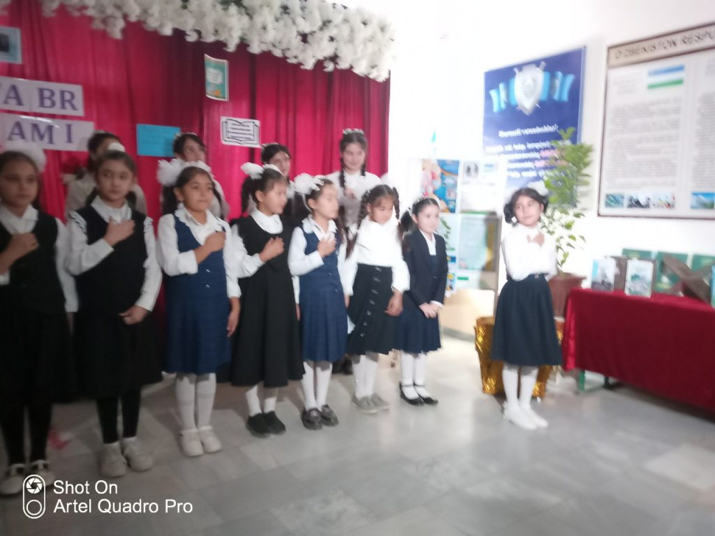 27-son maktabda 10 -dekabr Davlat madhiyasi qabul qilingan kunining 30 yilligi munosabati bilan «Shuhrating porlasin toki bor jahon» mavzusida o’quvchilar tomonidan madhiyamiz jamoaviy jo’r bo’lib kuylash tanlovi o’tkazildi