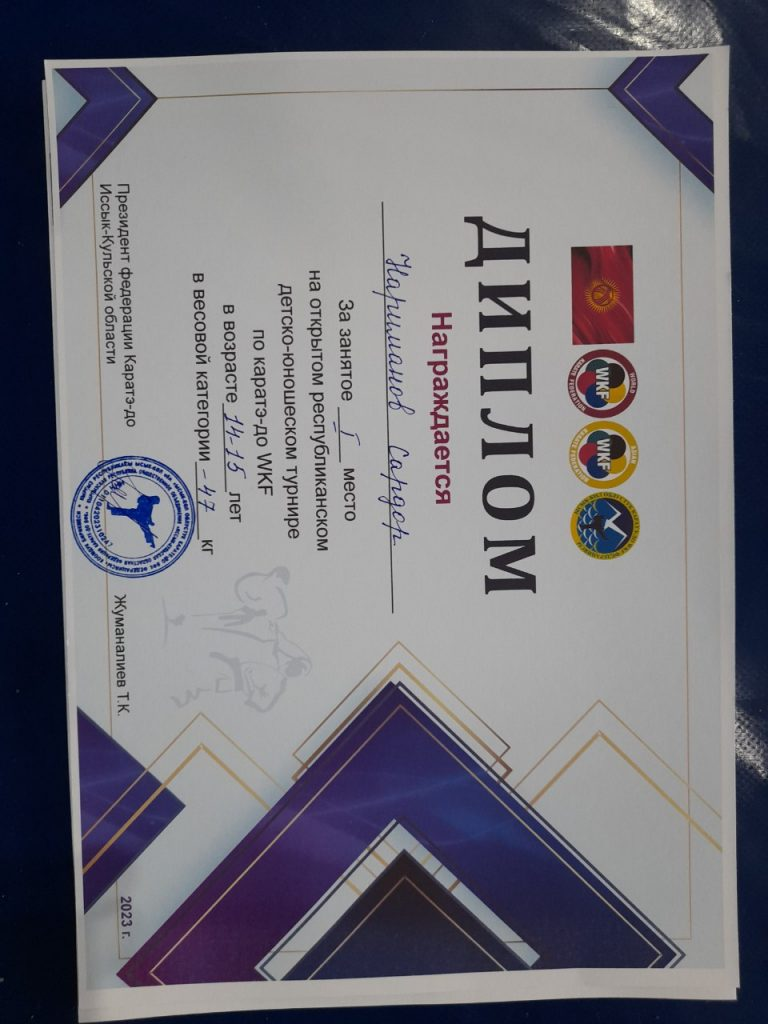 Xonqa tumani 27-son maktabining 8D-sinf o’quvchisi Narimonov Sardor sportning Shotakan — Karate turi bo’yicha Respublika Bolalar va o’smirlar ochiq chempionatida qatnashib 1- o’rinni qolga kiritib, oltin medal va so vrinni qo’lga kiritdi