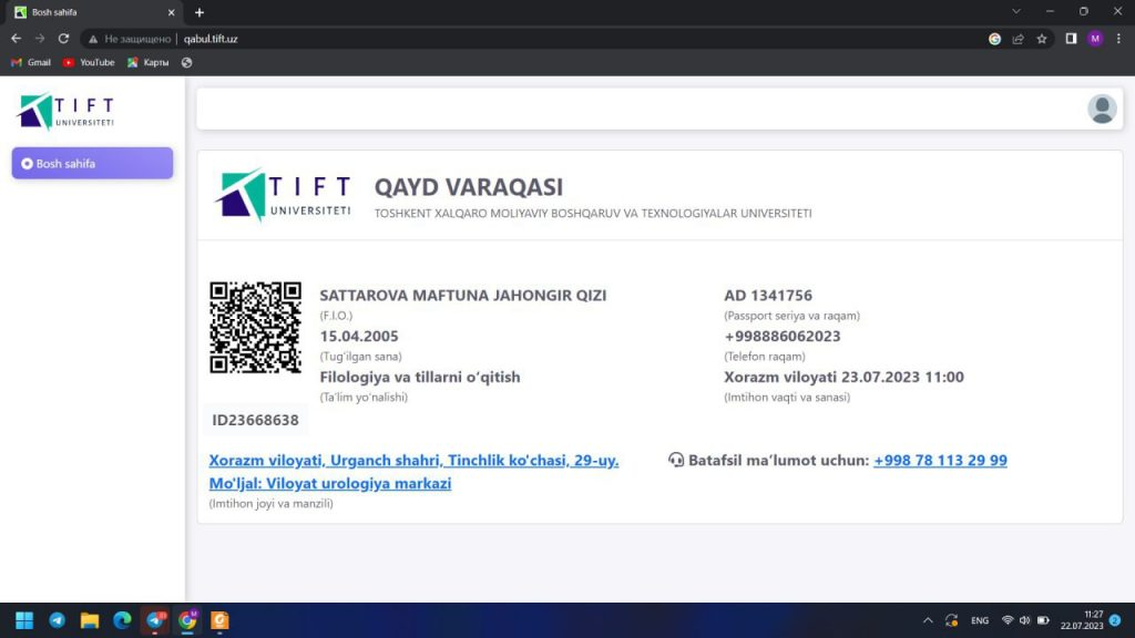 БАРЧА УСТОЗЛАР ни,Мафтуна қизимизни талабаликка қабул қилинганлиг муносабати билан мактаб маъмурияти номидан табриклайман.Ўқитган Устозлар га,ота-онасига миннатдорчилигимни билдирамиз .Бардавом бўлсин ютуқларимиз .