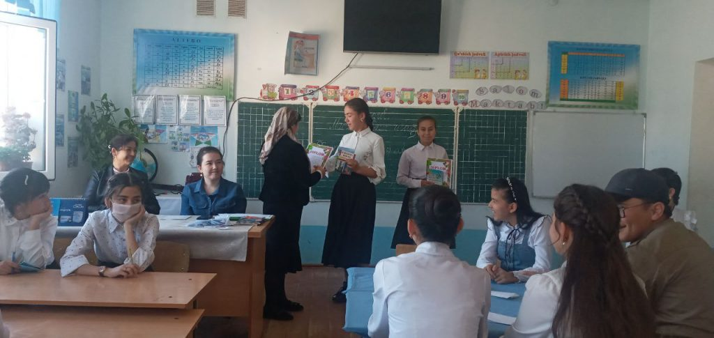Пахтагул МФЙ да жойлашган 27-сон умумтаълим мактабида «Ёшлар ўртасида эрта турмуш қуришнинг салбий оқибатлари» мавзуси тўғрисида давра сухбати ўтказилди. Бунда мактабнинг 10-11синф ўқувчилари хамда мактаб писихолиги Р.Қурамбаева, 27 — сон мактаб зам директори Р.Мухаммедовалар қатнашишди.