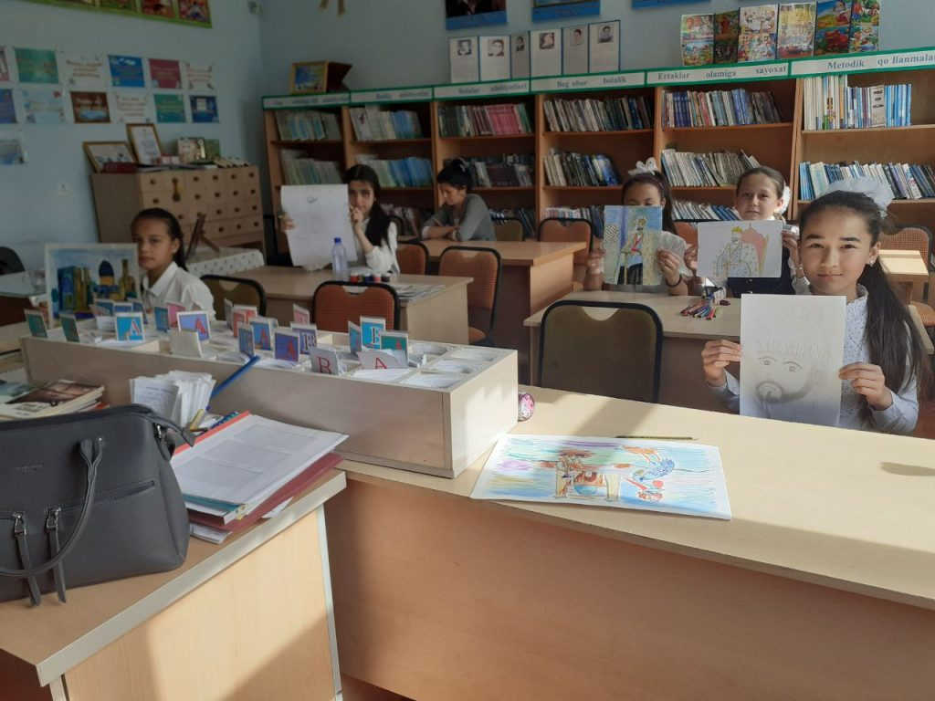 Xorazm viloyati Xonqa tumani 27-son umumiy o’rta ta’lim maktabda 14.04.2023 kuni Yusupboeva Zebiniso ustoz tomonidan 5 va 6- sinf o’quvchilari o’rtasida «Amir Temur bobomizning 687-yilligiga bag’ishlab»rasmlar tanlovi bo’lib o’tdi, shuningdek 10-11 sinf o’quvchilari bilan davra suhbatlari o’tkazildi, jarayonlardan fotolavhalar.
