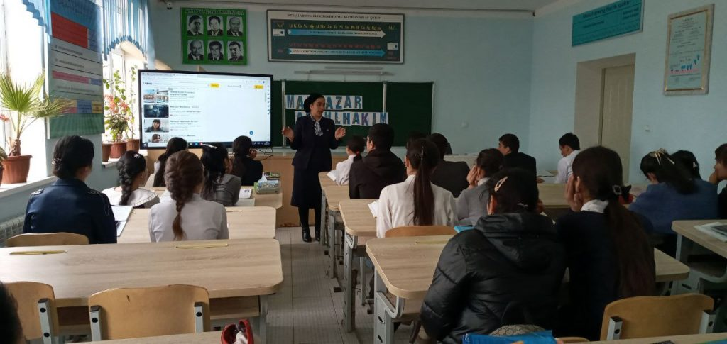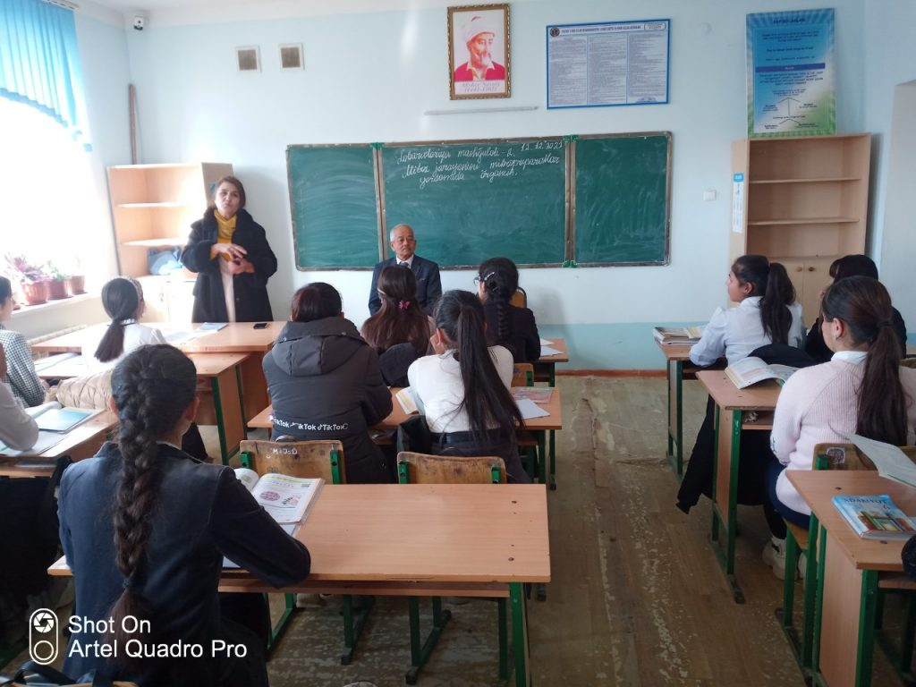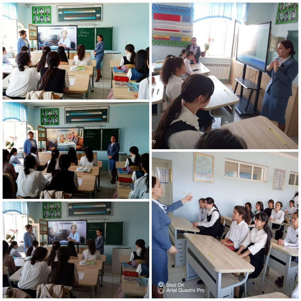 27-son maktabning 8b-sinf rahbari Madaminova Yangiljonning 3 fevral kuni ma’naviyat soatida o’tkazgan ochiq darsidan fotolavhalar