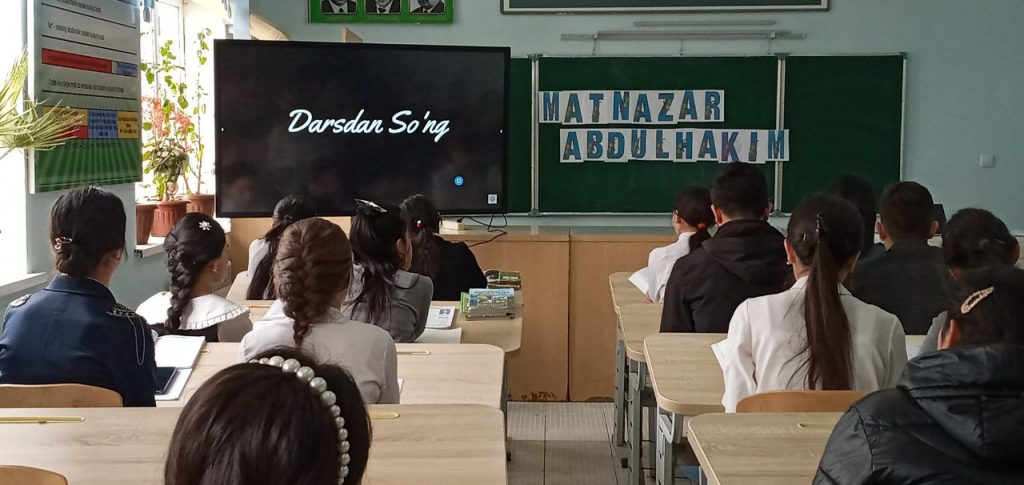 Xorazmning yetuk farzandi bòlmish Matnazar Abdulhakim tavallud kuni keng miqyosda nishonlanmoqda hamda ma’naviy-ma’rifiy tadbirlar davom etmoqda.Xonqa tuman 27-son maktabda ona tili va adabiyot fani òqituvchisi Jumaniyozova Gulnoza ustoz 11-sinf òquvchilarga Xorazmning farzandi Matnazar Abdulhakim hayoti va ijodi haqida tanishtirdi.Dars sònggida har bir shaxsning uyida shoirimizning bir kitobi bòlishi kerakligini ta’kidladilar.
