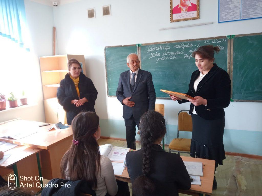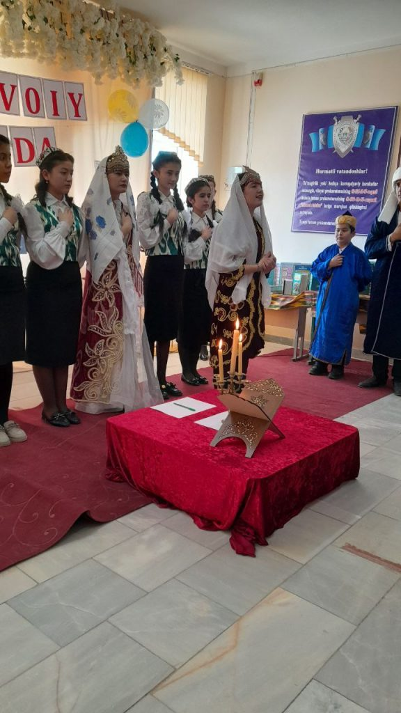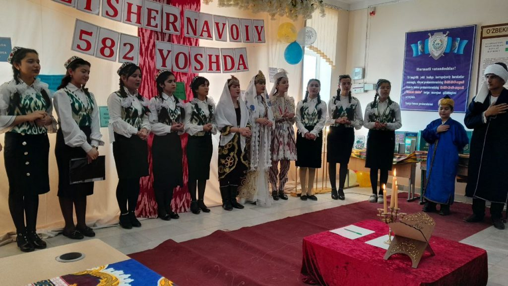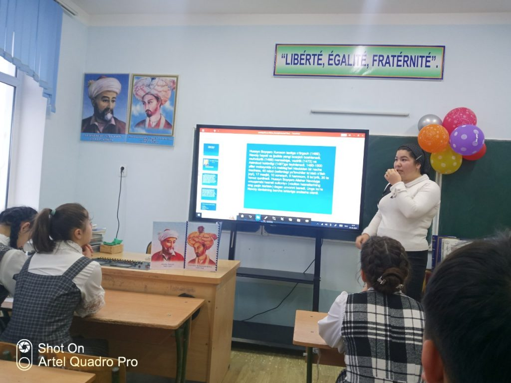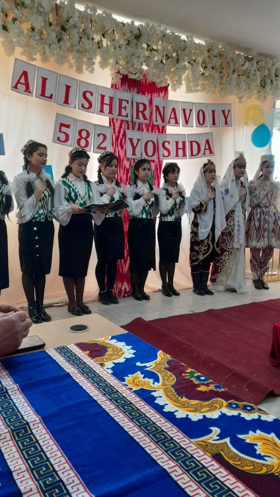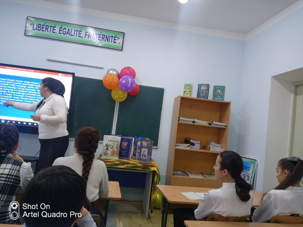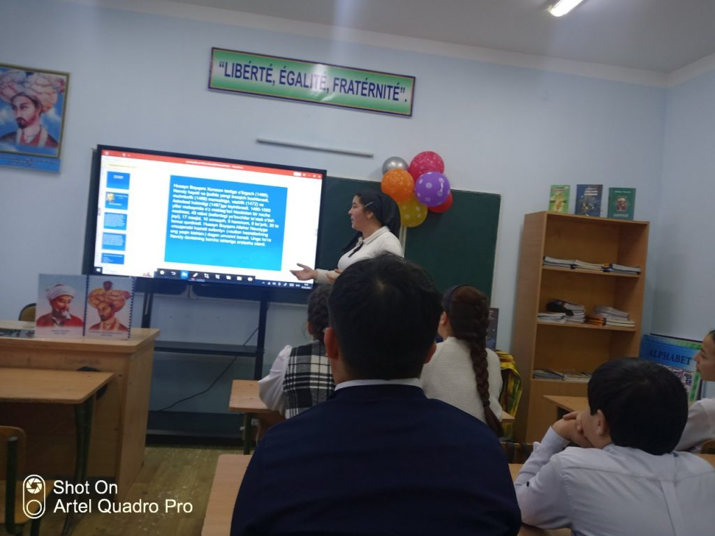 27-son maktabning Ona tili va adabiyot fani o’qituvchisi Djumanyozova Gulnoza ustozning, «Alisher Navoiy 582 yoshda» deb nomlangan ma’naviy marifiy tadbiri bo’lib o’tdi,tadbir doirasida o’quvchilar tomonidan g’azallar,ruboiylar, va Navoiy asarlaridan parchalar ijro etilib, yig’ilganlar tomonidan katta qiziqish bilan tomosha qilindi, barchaga ko’tarinki kayfiyat va xushnudlik baxsh etdi