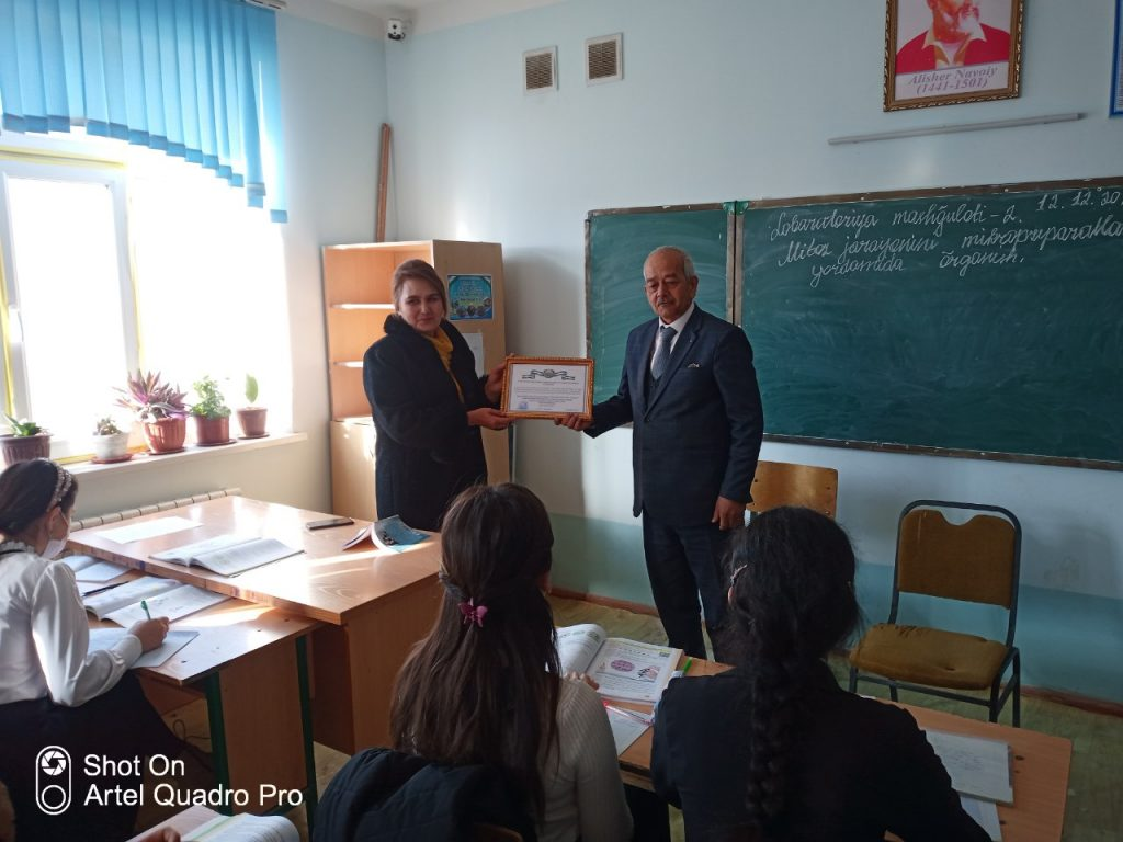 27 son maktabda uyda yakka tartibda o’qiyotgan o’quvchi bilan maktab psixologi X.Rajabova suhbat qilib, maktab mamuriyati tomonidan nonushta hamda o’quv qurollari topshirildi