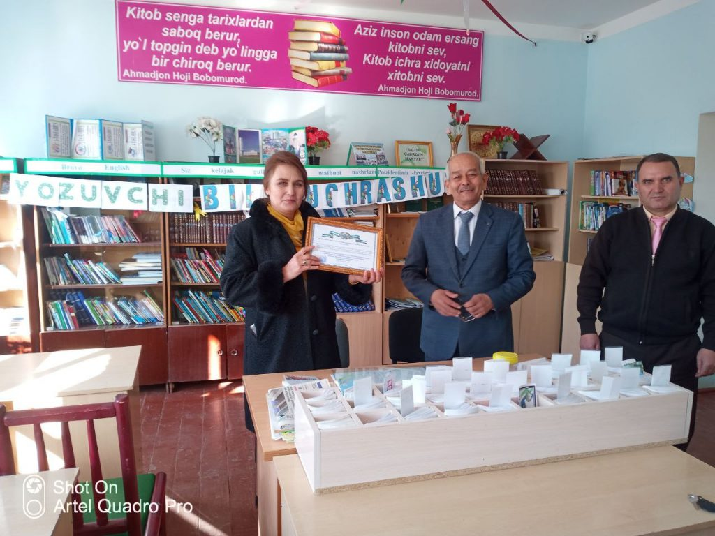 2023- yil 6-aprel kuni Xonqa tumanidagi 27-son umumiy o’rta ta’lim maktabida «Kitob marafoni!» bo’lib o’tdi. Marafonda o’qituvchilar, o’quvchilar va ularning ota-onalari faol ishtirok etib, o’zlarini qiziqtirgan kitoblarni xarid qilib maktab kutubxonasiga sovg‘a qildilar. Tadbirdan fotolavhalar.