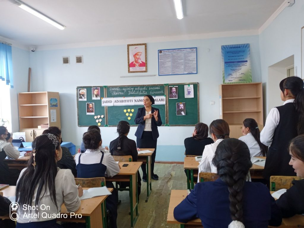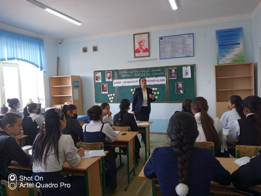 27-son umumiy o’rta ta’lim maktabi ona tili va adabiyot fani o’qituvchisi Djumaniyozova Gulnoza ustozning 10- sinf o’quvchilari bilan «Jadidchililk harakati» mavzusida bo’lib o’tgan ochiq darsidan fotolavhalar