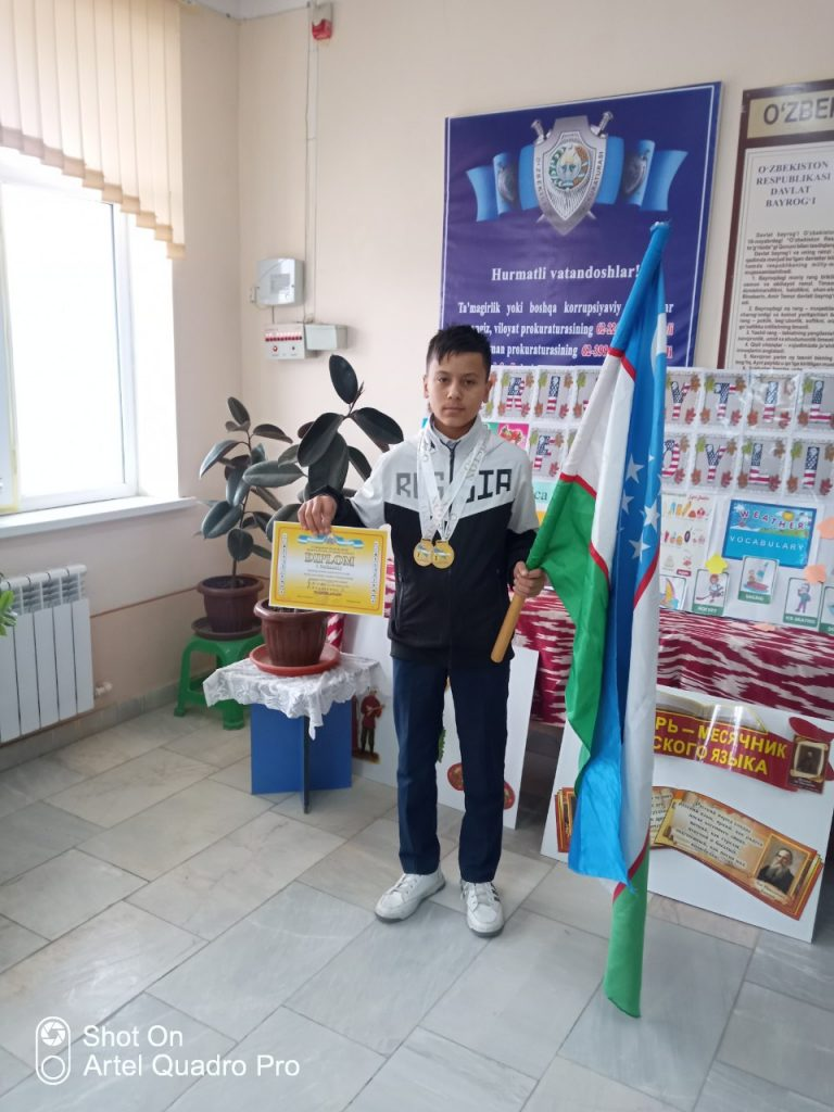 Sportning Shotakan Karate -do turi bo’yicha barcha yosh toifalari o’rtasida O’zberiston kubogi jamoa tartibda kumite ( kata)baxslari 12- 13-yosh ABC vazn toifasida ham maktabimizning 8d- sinf o’quvchisi Narimonov Sardorbek Respublika chempiyoniga aylandi