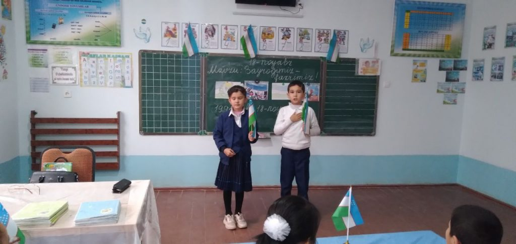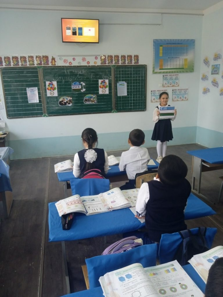 Xonqa tumani XTBga qarashli 27-son umumiy o’rta ta’lim maktabida вoshlang’ich sinf va yuqori sinflarida O’zbekiston Respublikasi Davlat bayrog’i qabul qilinganing 31 yilligiga bag’ishlab ochiq darslar o’tkazildi.