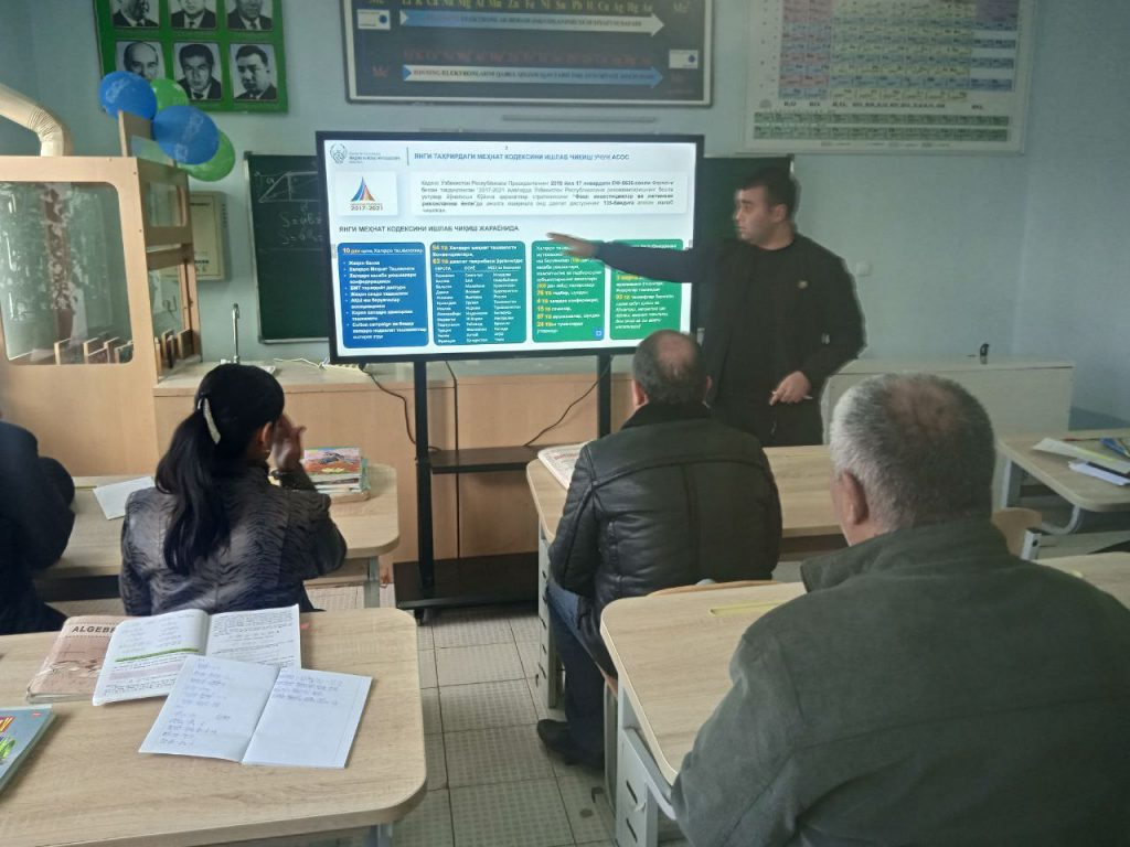 Хонқа тумани 27-сон умум таьлим мактабида ЯНГИ тасдиқланган мехнат кодексининг тақдимоти бўлиб ўтди