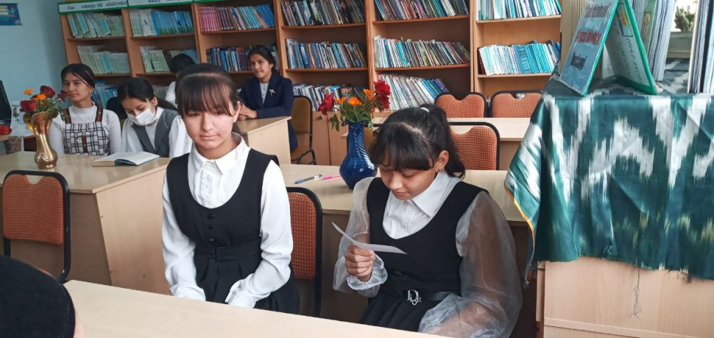 Xorazm viloyati Xonqa tumani 27-umumiy òrta ta’lim maktabida Kasaba uyushmasi va xalq ta’limi qo’shma qaroriga asosan tashkil etilgan ,, Yosh kitobxon » tanlovi o’tkazildi, tanlovda maktabning 9-10-sinf kitobxon o’ quvchilari ishtirok qildilar