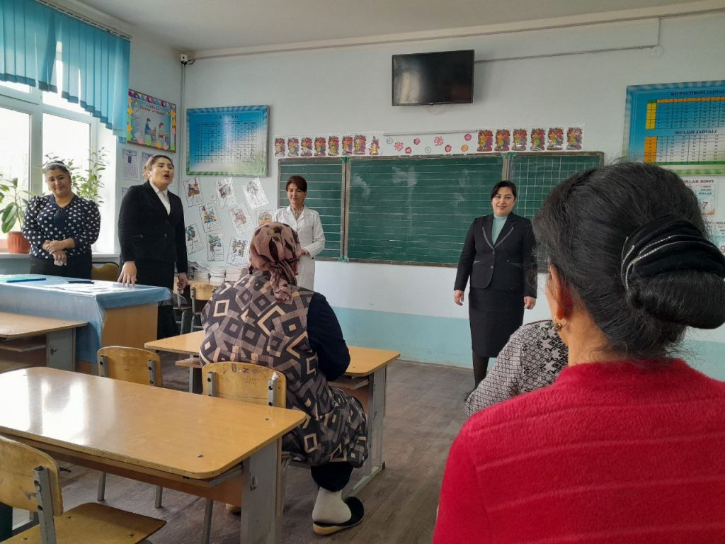 Xonqa tumanidagi 27-son umumiy òrta ta’lim maktabida boshlanģich sinf rahbarlari,MMIBDÒ,Maktab hamshirasi,maktab psixologi tomonidan ota-onalar yiģilishi òtkazildi