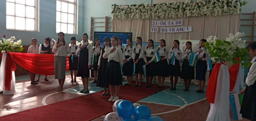1989-yil 21 oktabr O’zbek tiliga Davlat tili maqomi berilganligi kuni munosabati bilan barcha maktablarda,litseylarda ushbu kun katta tantana bilan nishonladi.O’zbek tilini madh etgan kuy-qo’shiqlar,she’rlar yangraydi.O’zbek tilining naqadar boy ekanligi,go’zalligi va badiiy jozibador ekanligi namoyish qilinadi.Tilimizga katta hurmat bilan qaraladi.