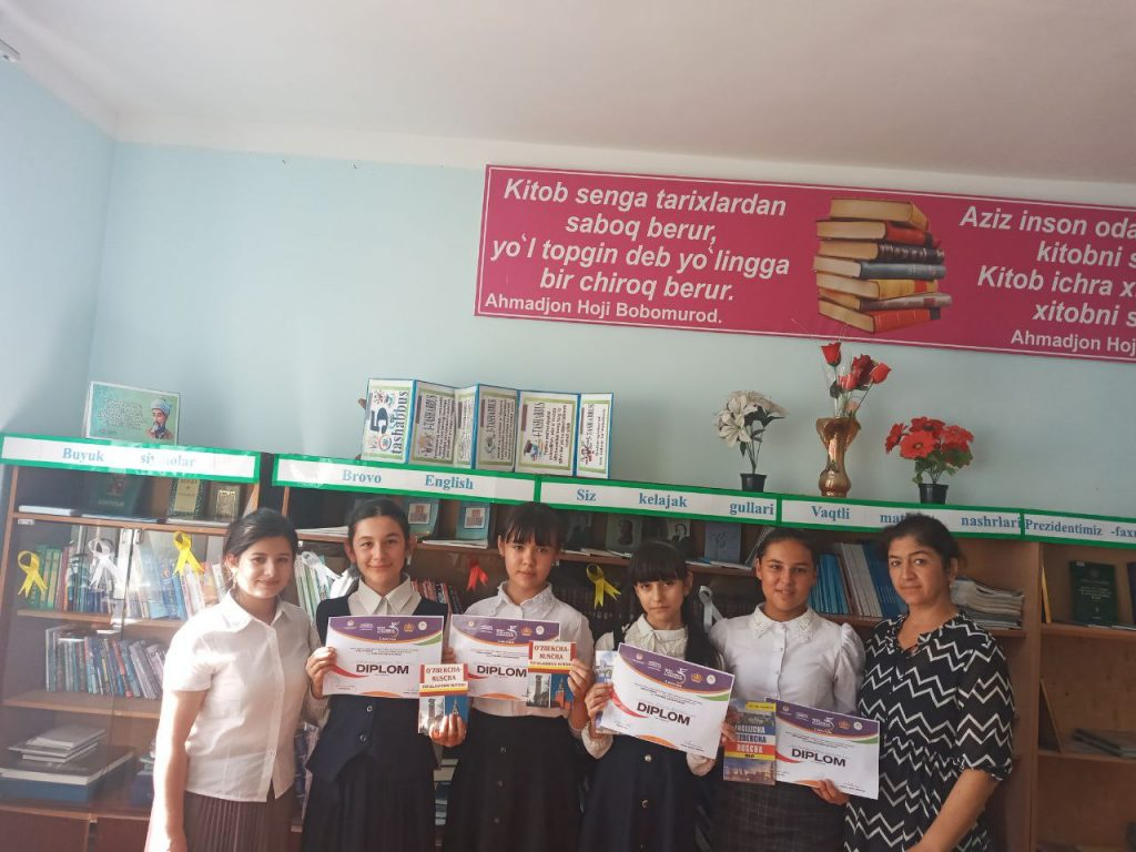 Tanlovning maktab bosqichida g‘oliblikni qo‘lga kiritgan o‘quvchi-yoshlarga diplom hamda Ogahiy bobomizning 7-jilddan iborat kitoblar to‘plami har bir o‘quvchiga tantanali topshirildi.